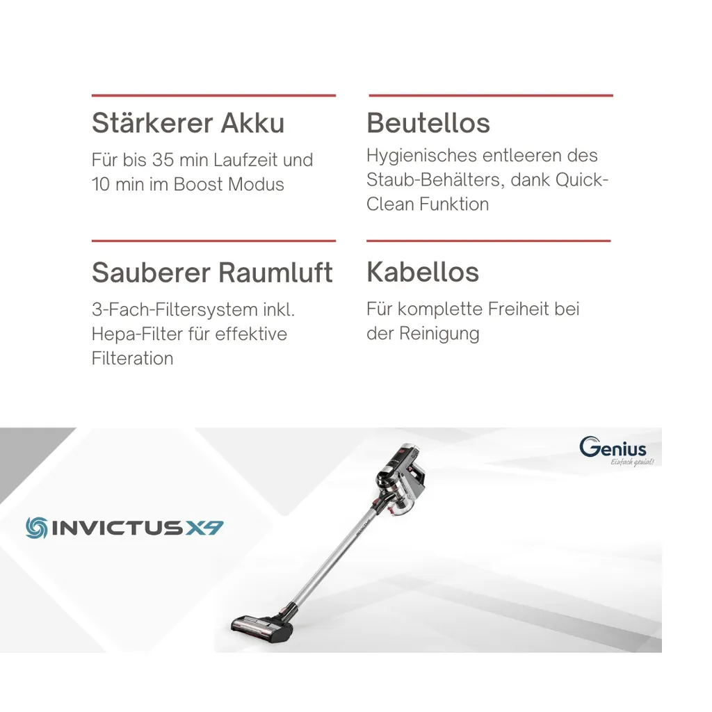 Schreibe die erste Rezension für „Genius Invictus X9 Set 14tlg Akku Staubsauger Handstaubsauger Mit LED Beutellos Kabellos HEPA Für Allergiker Tierhaare; A28142“ Antwort abbrechen